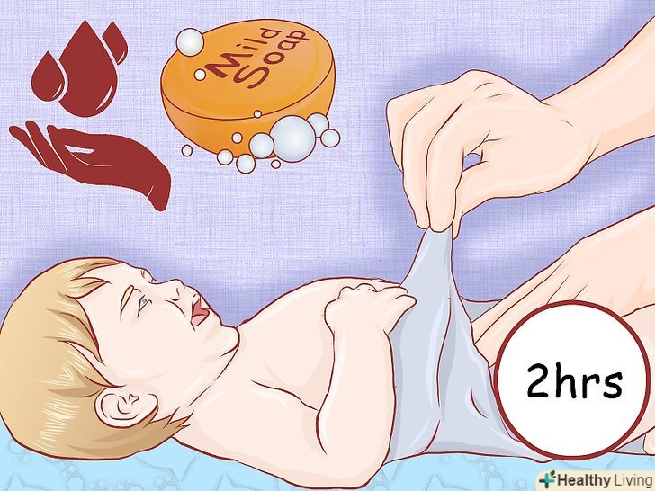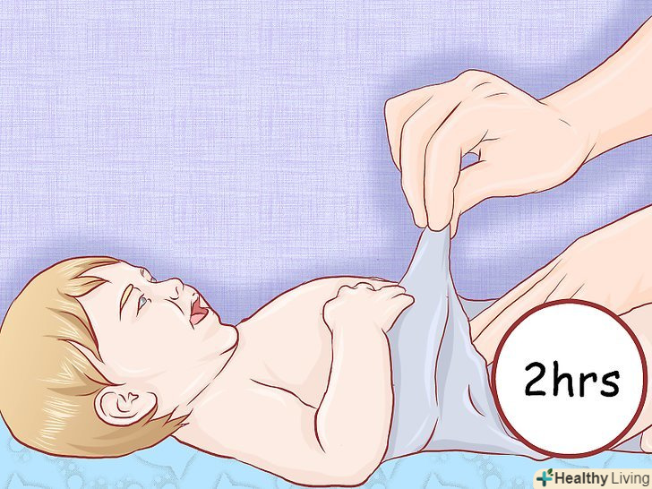 Міняйте дитині підгузник кожні кілька годин і після кожного стільця. застосовувати крем під підгузник найкраще під час зміни підгузника. Батькам новонароджених малюків доведеться міняти підгузники кожні дві години і після кожного стільця. Трохи підросли немовлятам і малюкам може вимагатися більш рідкісна Зміна підгузників, так як у них сечовипускання відбувається рідше. Якщо у вашої дитини вже присутній пелюшковий дерматит або є дуже чутлива шкіра, після стільця ви повинні міняти підгузники якомога швидше, так як він є найголовнішою причиною появи пелюшкового дерматиту і роздратування шкіри.[32]- Якщо у дитини дерматит, перевіряйте його підгузник щогодини протягом дня і один раз серед ночі, щоб переконатися в тому, що він чистий.[33]