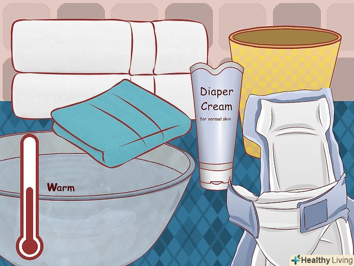 Підготуйте необхідний інвентар для зміни підгузників.буде простіше для вас і безпечніше для дитини, якщо ви забезпечите легку доступність всього необхідного інвентарю для зміни підгузників. Наявність всього необхідного під рукою не викличе у вас необхідності залишити дитину без нагляду під час зміни підгузника. Необхідний інвентар включає в себе:- Чистий підгузник;