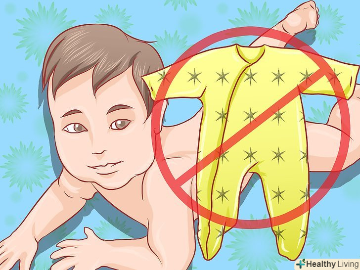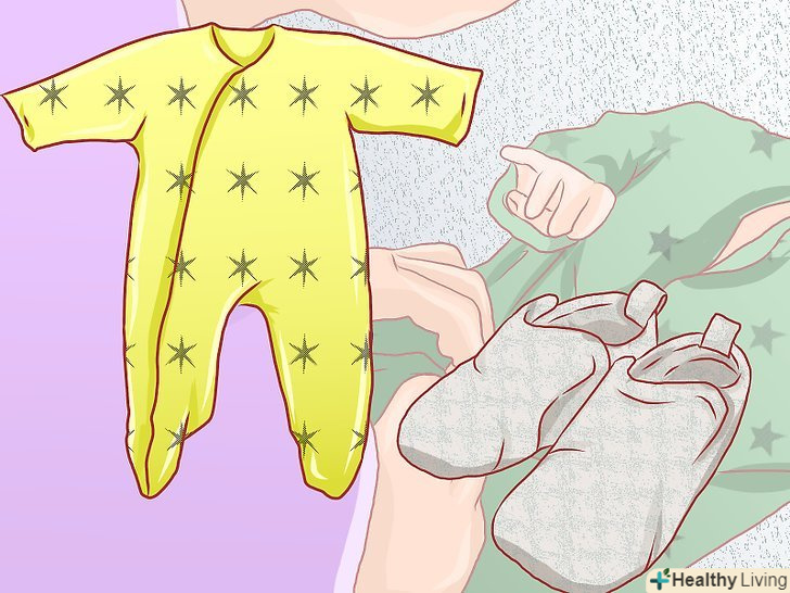 Одягніть на дитину одяг і взуття.після того, як ви підмиєте дитини, змастите кремом і надягнете на нього свіжий підгузник, його можна буде одягнути. Однак, малюкові слід дозволяти якомога більше проводити часу голяка (не менше 30 хвилин в день).- Якщо малюк забруднив одяг, замініть її на свіжу. Не можна допускати поширення бактерій і посилення пелюшкового дерматиту.