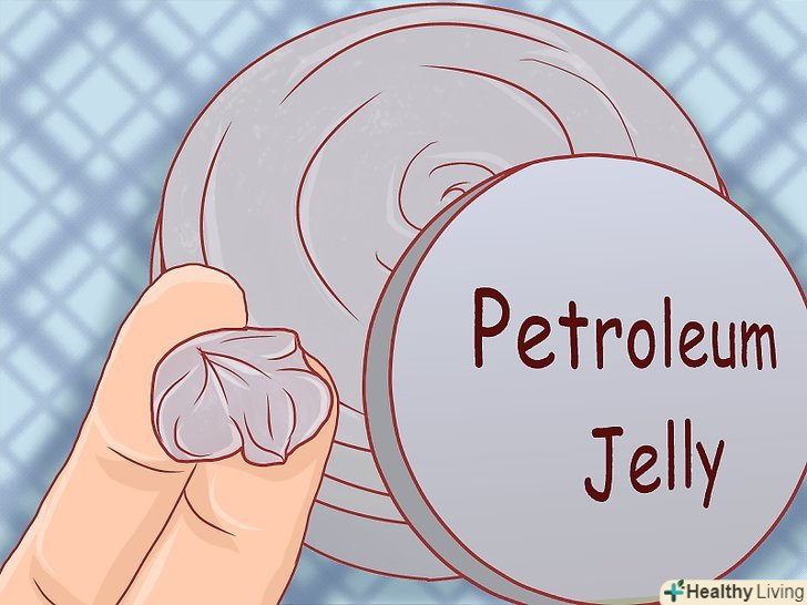При необхідності додатково змастіть шкіру дитини вазеліном.деякі креми під підгузник досить липкі, через що підгузник може прилипати до шкіри дитини. Це може викликати подальше подразнення шкіри. Щоб зменшити липкість крему і сприяти нормальному припливу повітря до шкіри, подумайте про нанесення поверх крему шару вазеліну. Тонкий шар вазеліну поверх шару крему дозволить забезпечити вільне облягання підгузника, що сприятиме відновленню шкіри.[42]- У деяких випадках ви навіть можете використовувати вазелін замість крему під підгузник.