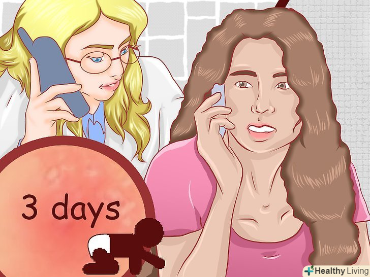 Проконсультуйтеся з педіатром, якщо симптоми пелюшкового дерматиту не проходять протягом трьох днів.звичайний пелюшковий дерматит повинен пройти за три дні лікування.[43] однак, іноді з пелюшковим дерматитом можуть бути дуже схожі інші шкірні або грибкові інфекції, або алергічні реакції (в такому випадку потрібне застосування інших ліків і більший час на лікування). Якщо крем під підгузник не полегшує стан дитини, зверніться до педіатра. Вам може вимагатися поміняти крем, здати алергопроби або виписати для вирішення проблеми рецептурні ліки.[44]- Якщо ви помітите появу аномальних симптомів (спека, гною, відкритих виразок), негайно зверніться до педіатра.[45]
