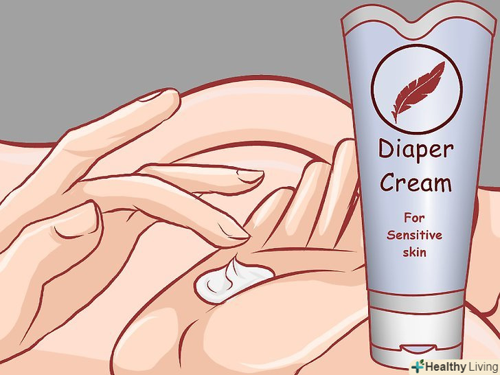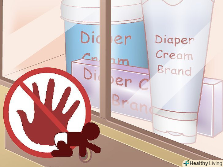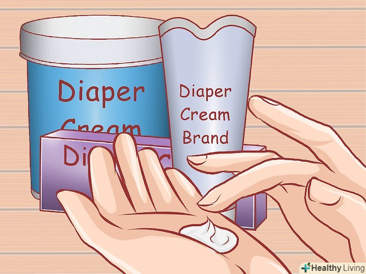 - Використовуйте тільки ті креми, які заявляють про те, що їх можна безпечно застосовувати для немовлят. Тримайтеся подалі від кремів з дорослою концентрацією речовин або з вмістом борної кислоти, харчової соди, камфори, бензокаїну, дифенгідраміну або саліцилату. Дані речовини можуть бути небезпечні для дітей.[29]