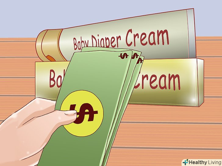 Купуйте тільки безпечний для дітей продукт.різні креми під підгузник можна знайти в більшості аптек і супермаркетів. Якщо ви доглядаєте за малюком, то у вас під рукою завжди повинен бути тюбик крему під підгузник, щоб запобігати і лікувати пелюшковий дерматит. Пошукайте такий крем під підгузник, який буде мати в складі оксид цинку, календулу і алое (ці речовини допомагають заспокоїти і захистити почервонілу запалену шкіру).[25] вазелін та інші мінеральні масла також є поширеними і безпечними інгредієнтами.[26]- Якщо у вашої дитини є яка-небудь алергія або підвищена чутливість шкіри, обов'язково уважно прочитайте список інгредієнтів купується крему, щоб він не міг погіршити дерматит. Наприклад, у дітей з алергією на шерсть не слід використовувати креми під підгузник з ланоліном в складі.[27]