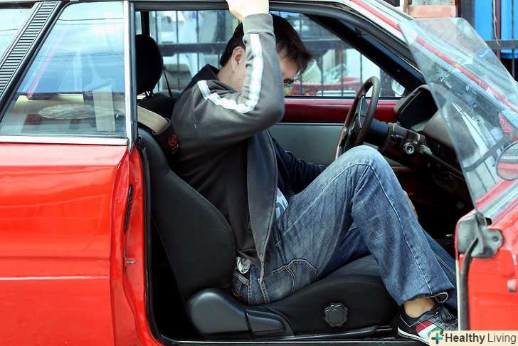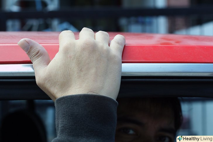 Відкрийте дверцята і, залишаючись сидіти в кріслі, покладіть свою руку на (зовні) дах автомобіля перед тим, як вилазити/виходити з нього.