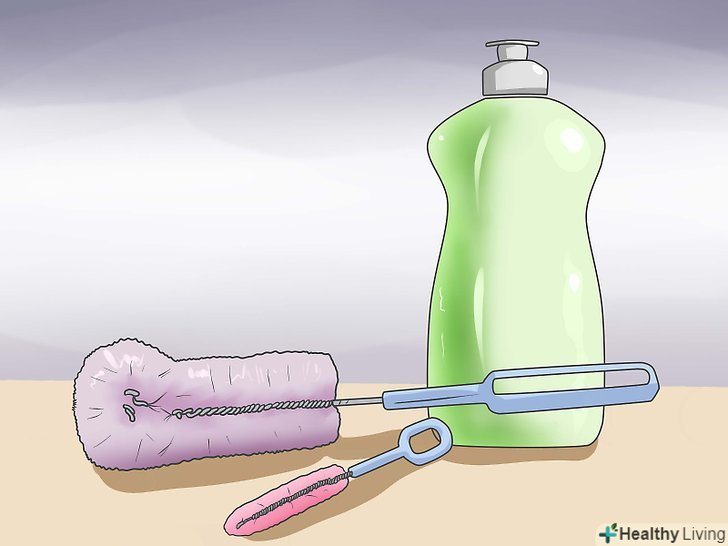 Приготуйте необхідні чистячі приналежності.коли миєте дитячі пляшечки, вам допоможуть правильні засоби. Переконайтеся, що у вас є:- Йоржик для миття пляшечок, щоб відмити дно і стінки пляшки, а також щітка для миття гумової соски, яка схильна збирати бактерії.