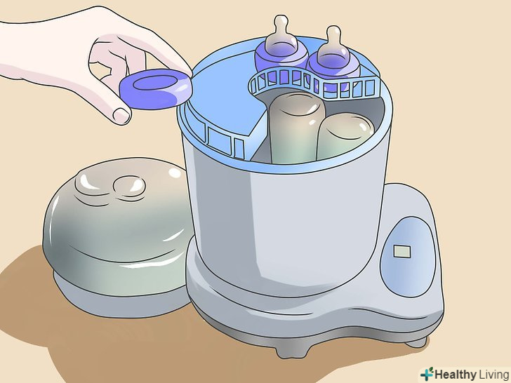 Використовуйте стерилізатор для пляшок.коли вам необхідно простерилізувати пляшечки, ви можете скористатися звичайним електричним або мікрохвильовим паровим стерилізатором.- В обох типах стерилізаторів пляшечка занурюється в пар при температурі в 100 градусів, що вбиває всі бактерії.