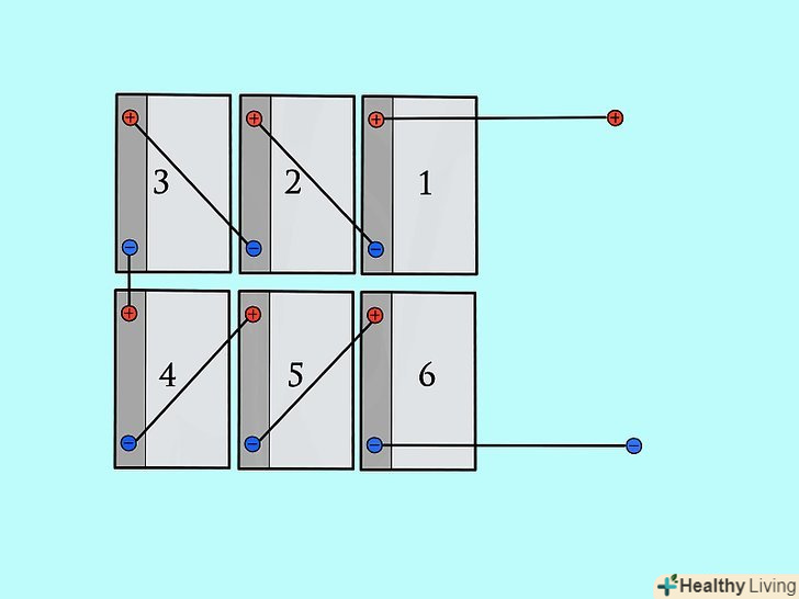 Систематично підключіть наступний акумулятор, протягнувши провід від першого до другого, і так далі до останнього акумулятора.