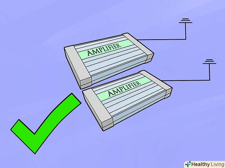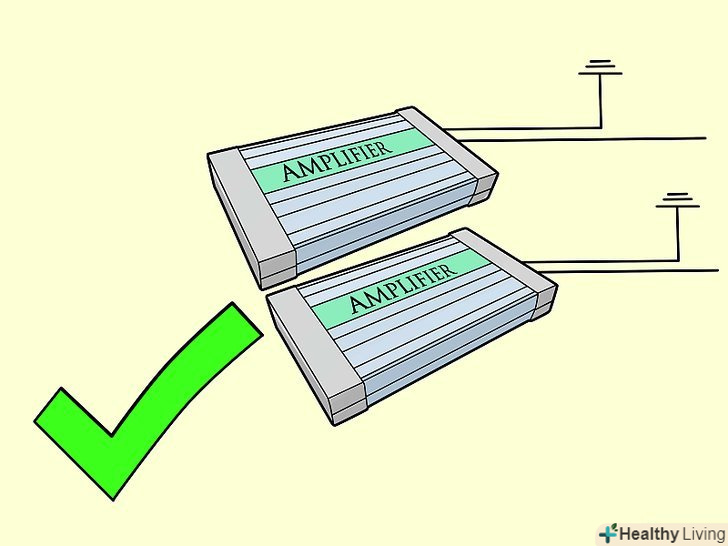 Переконайтеся, що кожен підсилювач має своє власне заземлення – просто прикрутіть дріт заземлення до будь-якої частини оголеного металу.якщо через провід проходить занадто великий струм, він може почати горіти і плавитися, тому краще зробити один провід.