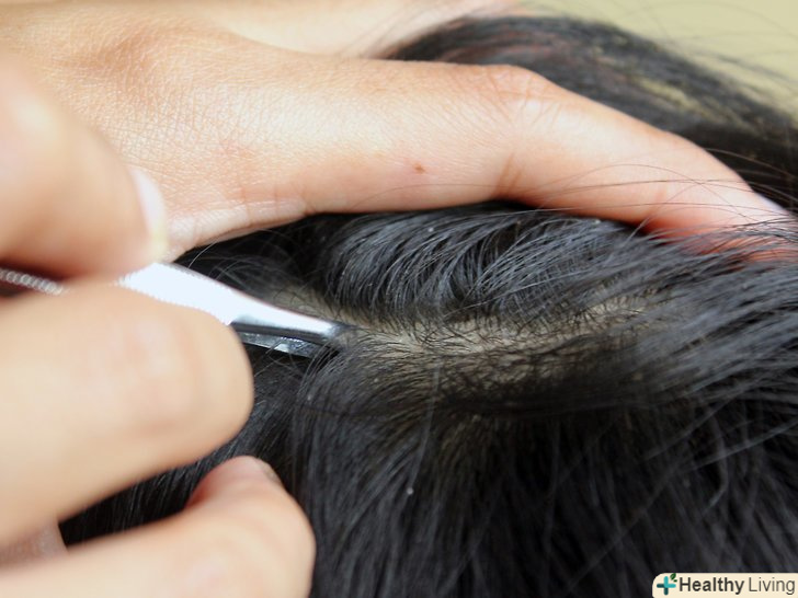 - Продовжуйте відокремлювати і перевіряти кожен невеликий відрізок волосся, поки ви не дійдете то темінь, потім почніть рух від потилиці до вух.