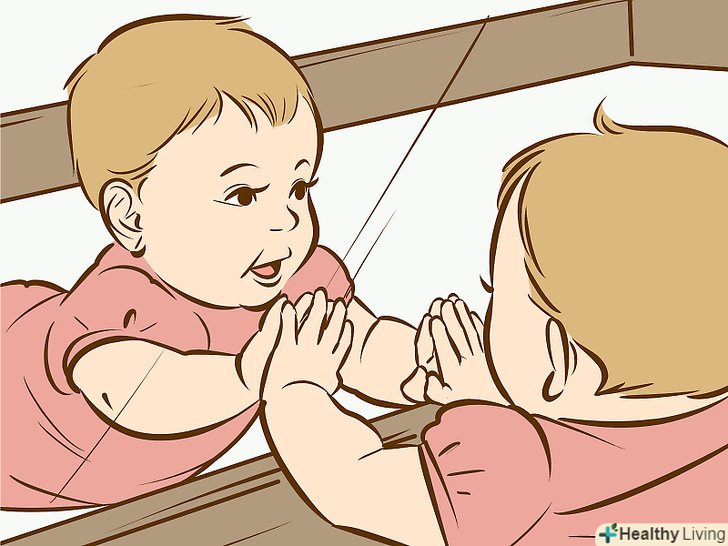 Поставте дзеркало прямо перед дитиною.Тримайте або встановіть дзеркало в 25 см від дитини, щоб він легко міг бачити своє відображення. Малюк захоче побачити себе краще і ближче, і для цього буде намагатися повзти вперед. Якщо ваша дитина вже пробував і звик грати з дзеркалом, це буде ще більш ефективним.