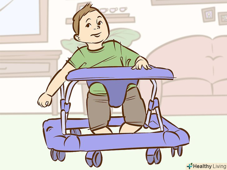 Обмежуйте час, проведений малюком в ходунках, автомобільних кріслах і високих стільчиках для годування.незважаючи на те, що дитині потрібно сидіти деякий час, переконайтеся, щоб під час неспання він, по можливості, був максимально стимульований. Всупереч своїй назві, ходунки повільніше навчать дитину ходити, тому що він не буде відчувати спонукання робити це самостійно. Якщо ви з дитиною просто нічого не робите, покладіть його на живіт і просто спонукайте до руху замість того, щоб посадити його в стільчик або покласти в ліжечко, щоб годинами дивитися на мобіль або іграшку.- Чим більше рухів може робити дитина, поки не втомиться, тим краще. Вам потрібно більше стимулювати дитину до руху і, таким чином, він натренується і буде готовий повзати або ходити.