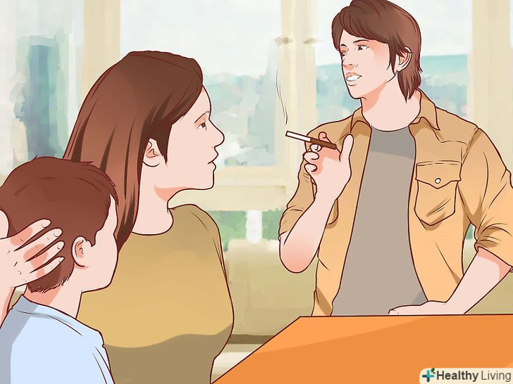 Слідкуйте за тим, щоб дитина не вдихав тютюновий дим.пасивне куріння послаблює імунну систему дитини, підвищуючи його вразливість до інфекцій.[18]- Якщо хтось у вашій родині курить і не може відмовитися від цієї шкідливої звички, попросіть його / її курити за межами будинку, щоб дитина не дихала димом. Також попросіть його / її не наближатися до дитини в прокуреному одязі.