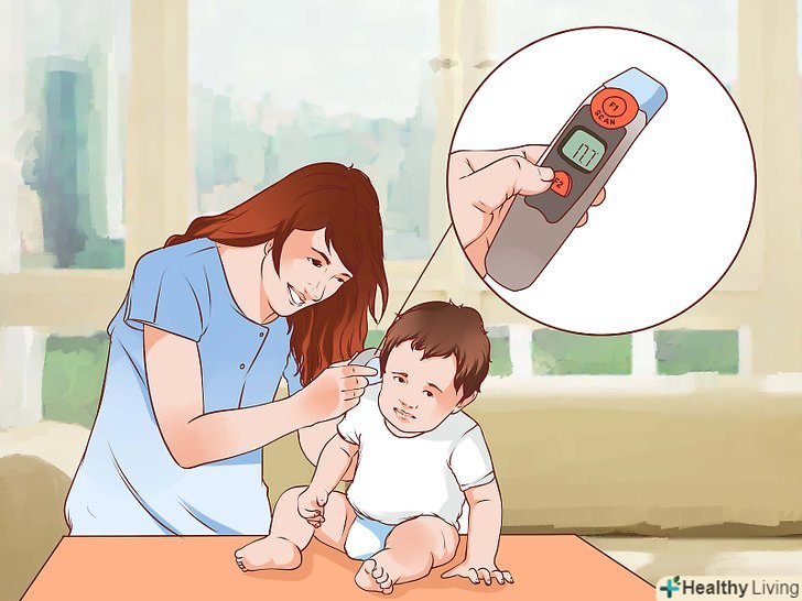 Перевірте вухо дитини за допомогою електронного вушного монітора.ці пристрої (наприклад, марки EarCheck) дозволяють за допомогою звукових хвиль виявити скупчення рідини в середньому вусі. Прилад реєструє відбиті звукові хвилі і визначає, чи є рідина в середньому вусі. Якщо у вашої дитини виявиться скупчення рідини в середньому вусі, слід звернутися до лікаря.[4][5] проте, наявність рідини не обов'язково означає, що у вашої дитини вушна інфекція.-