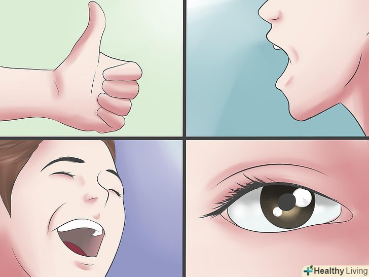 Покажіть дитині важливість невербального спілкування.діти з аутизмом спілкуються переважно за допомогою мови. Однак спілкування і бесіда — це не тільки просте озвучування слів і пропозицій.- Щоб успішно підтримувати розмову, людина повинна також розуміти невербальні сигнали, такі як мова тіла, інтонації, міміку співрозмовника і вираз його очей.