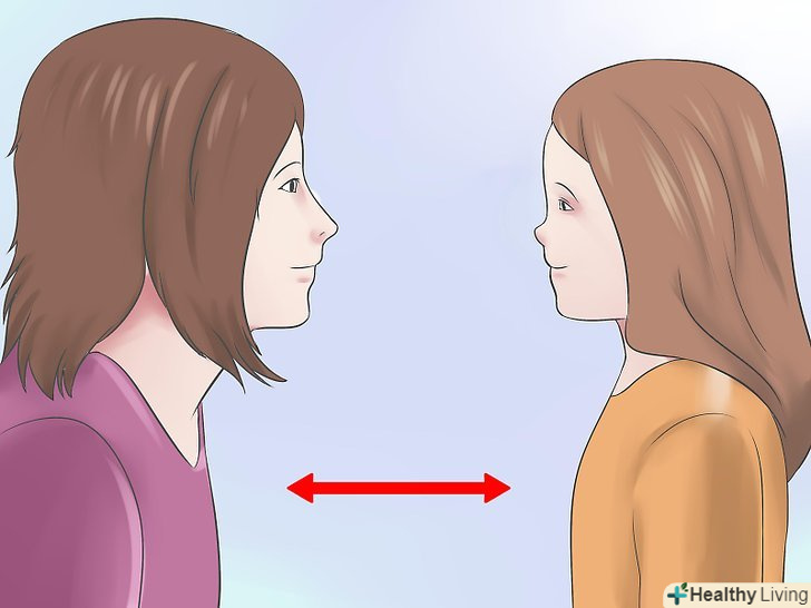 Навчіть дитину визначати, на якій відстані варто перебувати від співрозмовника.під час розмови необхідно зберігати правильну дистанцію, щоб інша людина могла відчувати себе комфортно. Діти з аутизмом зазвичай відчувають з цим певні труднощі і схильні підходити до співрозмовника занадто близько. Така поведінка може змусити іншу людину відчувати себе ніяково, що не сприяє доброзичливій бесіді.- При розмові зі знайомою людиною найкраще перебувати на відстані витягнутої руки.