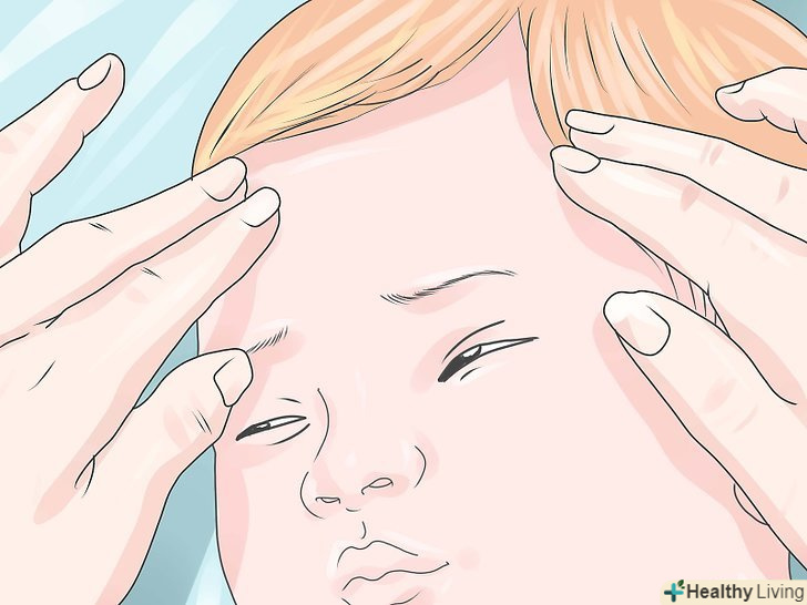 Почніть з голови.поставте великі пальці обох рук в центр чола малюка і робіть м'які натискають руху зсередини назовні. Так само продовжуйте розминати і інші частини обличчя. Великими пальцями робіть невеликі кругові рухи на щоках, в області скул і рота.