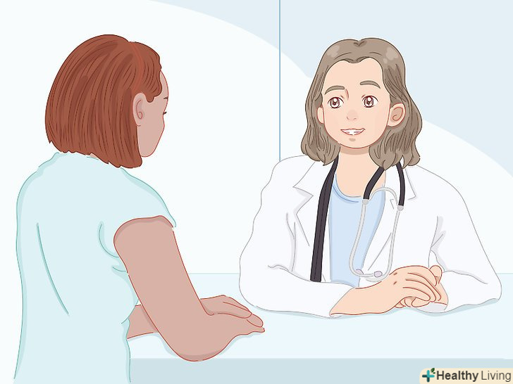 Проконсультуйтеся з сімейним лікарем або педіатром.якщо ви помітили будь-які з перерахованих вище ознак і симптомів, які зберігаються протягом декількох днів (і Ваші батьківські інстинкти б'ють тривогу), запишіться на прийом до лікаря. Це найкращий спосіб дізнатися, чи є у дитини отит або інші нездужання, що вимагають медичної допомоги. Лікар скористається приладом з фоновим підсвічуванням, який називається отоскоп, щоб оглянути барабанну перетинку. Почервоніла і опухла барабанна перетинка свідчить про запалення середнього вуха.[7]- Також лікар може використовувати спеціальний пневматичний отоскоп, який пускає струмінь повітря в зовнішній слуховий прохід крізь барабанну перетинку. Здорова барабанна перетинка у відповідь на повітряний потік вібрує з невеликою амплітудою, а забита рідиною може взагалі залишатися нерухомою.