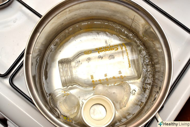 Кип'ятіть дитячі речі.Кип'ятіть або використовуйте дезінфікуючий засіб для видалення мікробів з таких речей як соска, дитячі іграшки та пляшки.