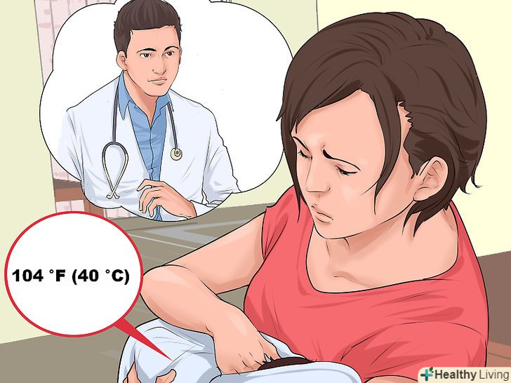 Дізнайтеся, коли слід звернутися до лікаря.якщо дитині менше 3 місяців, а температура тіла вище 38°C, зверніться до лікаря.[25] якщо у дитини, якій більше трьох місяців, тримається температура 40°C протягом двох-трьох днів, негайно зверніться до лікаря.- Лікар зможе визначити, чи повинна дитина перебувати під наглядом в лікарні або може отримувати необхідне лікування вдома.