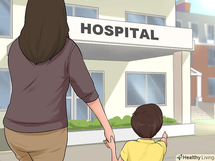 Дізнайтеся, коли необхідно викликати швидку допомогу.якщо у дитини підвищилася температура до 40,5°C, почалися судоми або інші неврологічні симптоми, якщо він дуже млявий, відчуває зневоднення або температура підвищилася внаслідок спекотної погоди, негайно викличте швидку допомогу.- Якщо у дитини температура підвищилася до 40,5°C, він потребує медичної допомоги. Зверніться до лікаря.