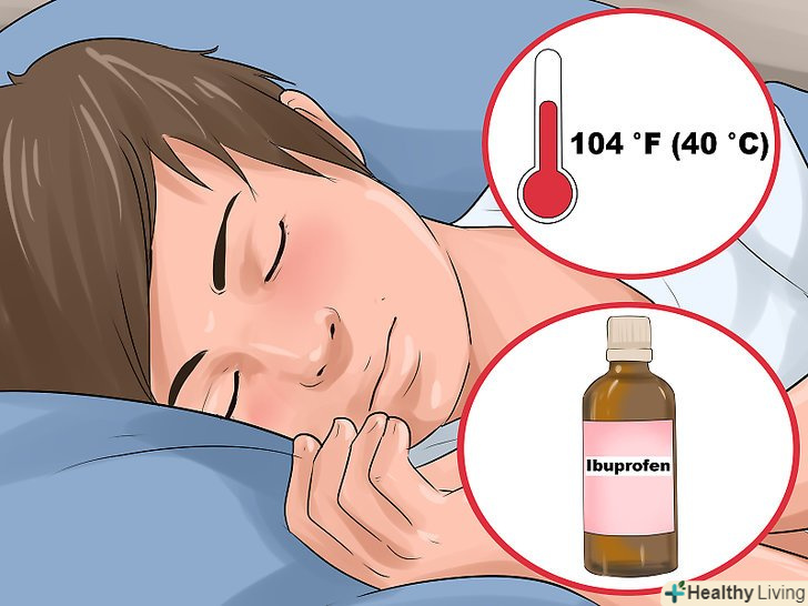 Дайте дитині необхідні ліки.можна дати дитячий парацетамол або ібупрофен.[2]- На думку провідних фахівців, жарознижуючі препарати слід приймати тільки в тому випадку, якщо температура перевищує 38.9°C.[3] більшість педіатрів дотримуються подібної точки зору. Вони рекомендують давати жарознижуючі препарати, якщо температурні показники вище 38,9°C або якщо дитина погано переносить температуру.