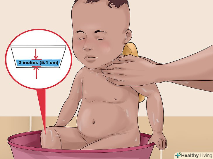 Протріть дитину губкою, змоченою в теплій воді.якщо температура продовжує залишатися вище 40°C через півгодини після прийому ліків, протріть дитину губкою, змоченою в теплій воді.[7]- Налийте воду (29-32°C) в миску (приблизно 5 см) і посадіть в неї дитину. Змочуйте шкіру дитини, використовуючи губку або махрову серветку.[8]