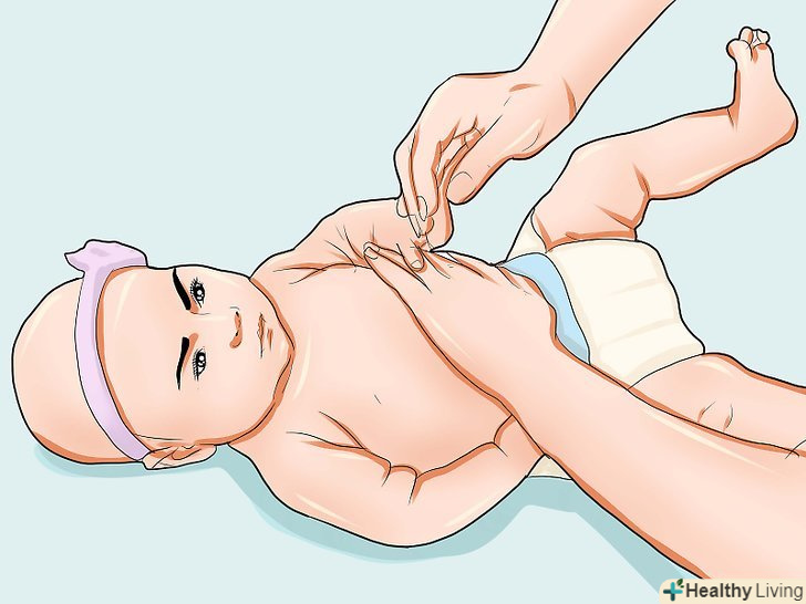 Попрацюйте зі спинкою дитини.покладіть дитину на животик на підлогу і нехай він трохи посувається. Це допоможе йому позбутися від бульбашок повітря, які викликають гикавку. Після цього ніжно помасажуйте спинку дитини, поки гикавка не піде.