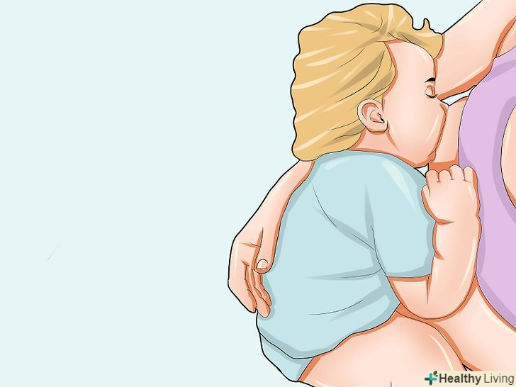 Під час годувань тримайте дитину у вертикальному положенні.шлунок дитини може занадто наповнюватися через те, що він заковтує повітря. Іноді зміна положення може допомогти вирішити цю проблему. Під час годування перекладіть малюка в більш вертикальне положення (під кутом в 30-45 градусів), щоб повітря не потрапляв в шлунок і не викликав скорочення діафрагми.