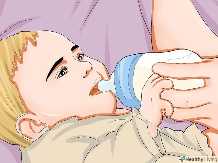 Годуєте з пляшечки таким способом, щоб дитина заковтував якомога менше повітря.якщо ви будете тримати пляшечку під кутом в 45 градусів, повітря буде залишатися на дні пляшки, що зменшить ймовірність того, що дитина заковтне повітря. Ви також можете купити пляшечки, спеціально розроблені для зменшення кількості заковтується дитиною повітря.[3]