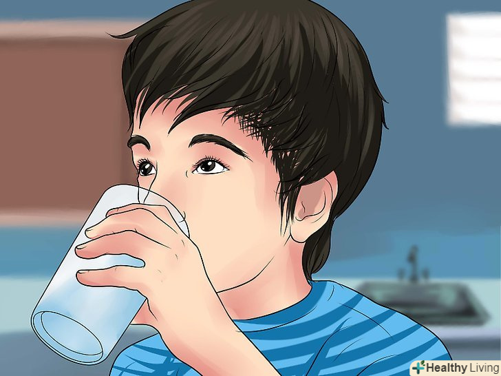 Давайте дитині достатню кількість води.зневоднення організму супроводжується безліччю симптомів, в тому числі і повторюваними головними болями. Щоб запобігти головні болі у дитини, стежте за тим, щоб він пив достатньо води протягом усього дня.- Дитина повинна випивати близько 4 склянок, або 1 літра, води щодня. Однак вашій дитині може вимагатися більше води, особливо якщо він фізично активний.[24]