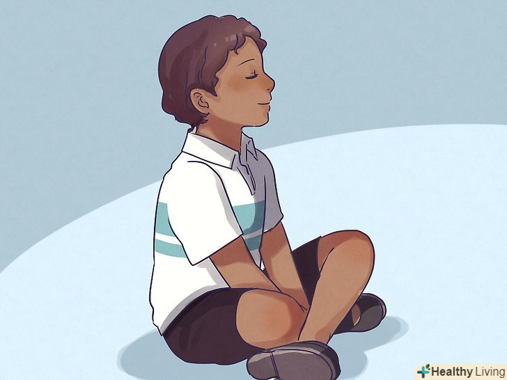 Навчіть дитину техніки глибокого дихання, щоб допомогти йому розслабитися.глибоке дихання-це техніка, яка допоможе дитині швидко заспокоїтися. Поясніть дитині, що, коли він переживає про щось, він починає дихати швидше, ніж зазвичай. Скажіть дитині, що через це його стан посилюється. Глибоке дихання означає видихи і вдихи, які наповнюють верхню і нижню частину легенів і залучають м'язи нижньої частини тулуба в цей процес.- Заохочуйте дитину дихати через ніс і заповнювати легені повітрям. Якщо ваша дитина не розуміє, як це зробити, покладіть руку йому на живіт і поясніть, що, коли він дихає, його животик повинен збільшуватися.