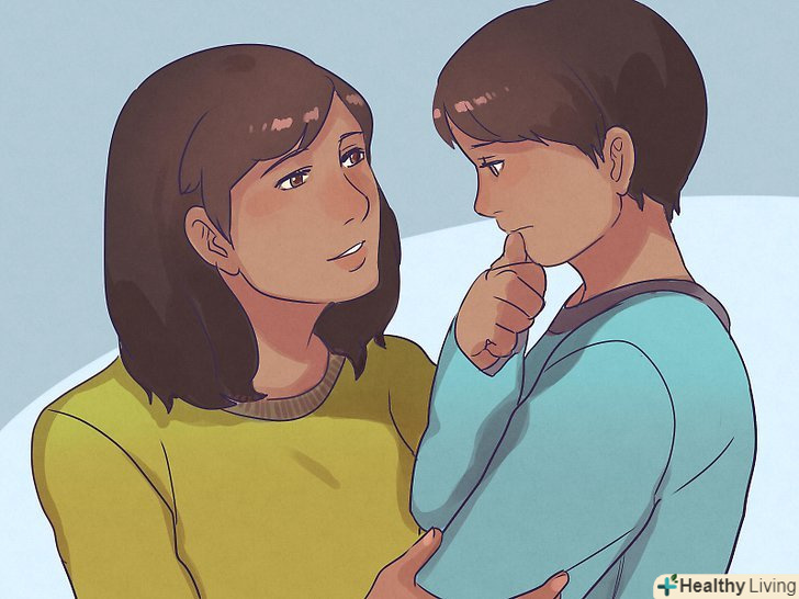 Запевняйте дитину у своїй любові.ваша дитина повинна знати, що ви любите його і приймаєте таким, яким він є. Ви можете думати, що ваша дитина і так це знає, але постійно запевняючи дитину в своїй любові, обіймаючи і спілкуючись з ним, ви допомагаєте йому впоратися з тривогою.- Пам'ятайте, про те що діти неймовірно чутливі до реакції батьків, тому якщо ви хочете щоб ваша дитина не відчував тривогу, проаналізуйте свою поведінку. Приймайте дитину такою, якою вона є, зосереджуйтеся на її позитивних якостях, навчитеся розслаблятися і боротися зі страхом, і ви зможете допомогти дитині впоратися з тривогою і занепокоєнням.