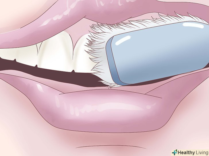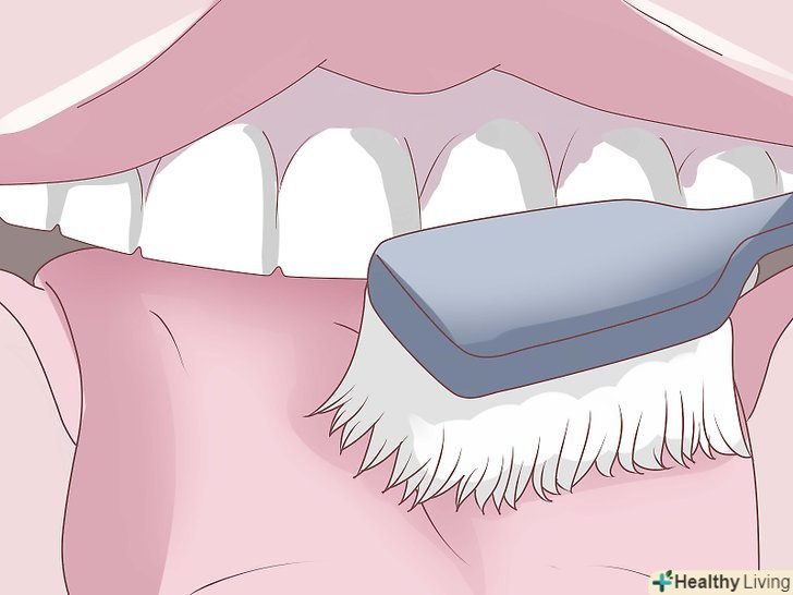Почистіть язик, ясна і справжні зуби за допомогою м'якої зубної щітки і звичайної пасти.дуже важливо видаляти весь наліт і залишки їжі перед установкою чистого протеза.- Якщо ви носите частковий протез, вам так само необхідно використовувати зубні нитки. Не забувайте про свої справжні зуби лише тому, що у вас є протези.