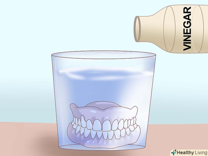 Зробіть домашній засіб для виведення плям.ви можете змішати в рівних пропорціях оцет і воду, і залишити протез відмокати в цьому розчині.