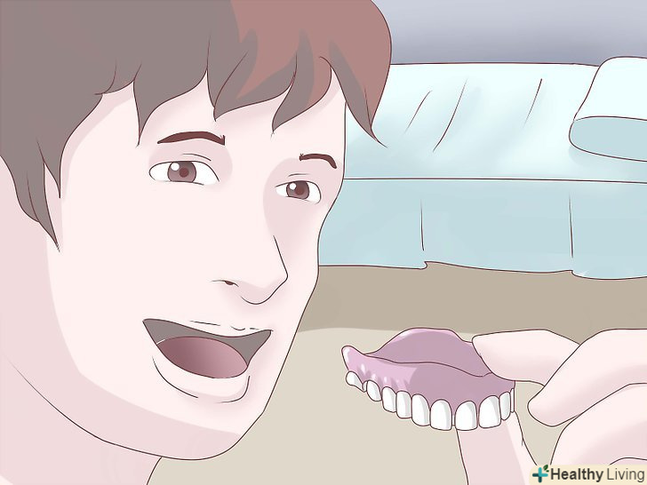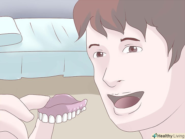 Давайте своїм яснам відпочити.виймайте протези на ніч. Це необхідно для того, щоб ваша ротова порожнина і ясна відновилися після дискомфорту, заподіяного протезами. Ви так само можете періодично виймати зубний протез протягом дня, якщо ваша ротова порожнина або ж щелепу затекли.- Якщо ви відчуваєте себе не комфортно без протезів, коли спите. Ви можете дати відпочинок яснам днем.. У будь-якому випадку, ваша ротова порожнина повинна відпочивати від протеза не менше 6-8 годин на добу.