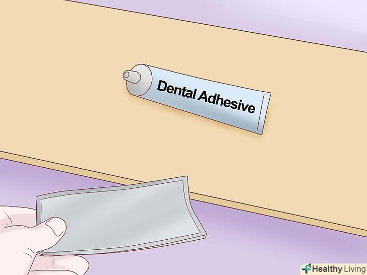 Купіть спеціальний клей, щоб підігнати протез за розміром.якщо він сидить занадто вільно, ви можете купити клей для протезів і скористатися ним, відповідна інструкція до застосування додається. Видавіть три або чотири горошинки клею на поверхню тканини зубного протеза, після чого вставте його.- Клей-це тимчасове рішення. Вам потрібно відвідати стоматолога для того, щоб більш міцно зафіксувати протез.