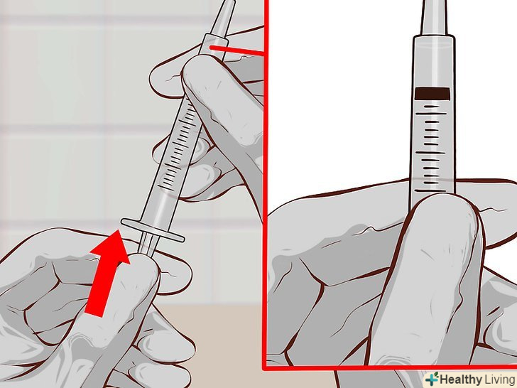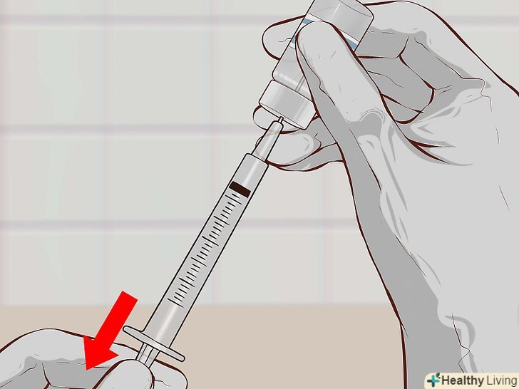 7. Відтягніть назад поршень шприца.відтягніть поршень до тієї позначки на циліндрі шприца, яка відповідає необхідній дозі.[13]