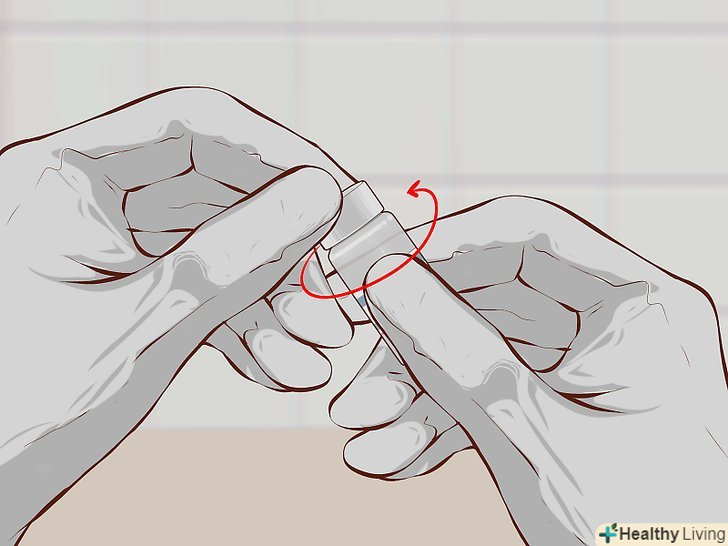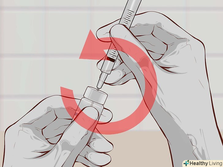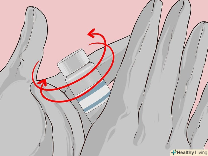 5. Дізнайтеся, чи слід обережно перемішати ліки.деякі препарати, наприклад інсулін, іноді здаються каламутними, і їх слід акуратно перемішати перед ін'єкцією. Покатайте флакон між долонями, щоб перемішати ліки. Не струшуйте флакон, інакше в рідині можуть утворитися бульбашки газу. Ви знайдете відповідні вказівки в інструкції із застосування препарату.[11]