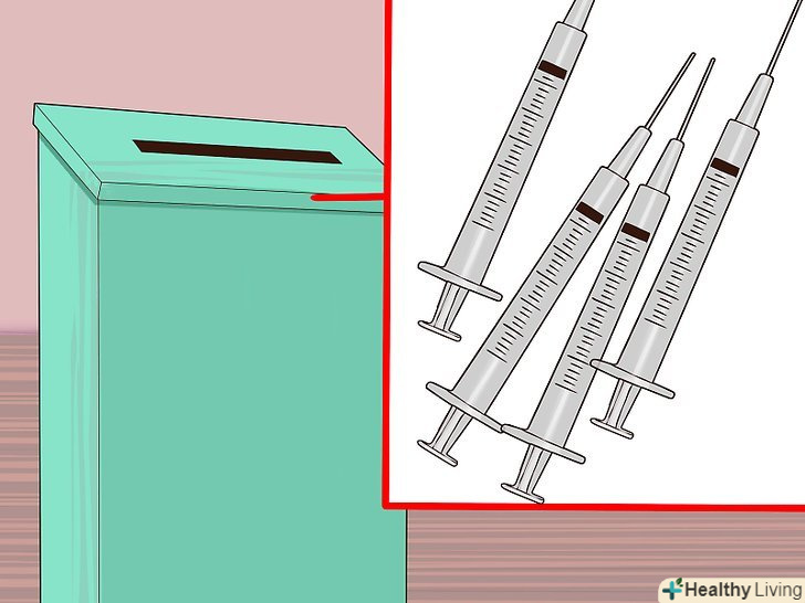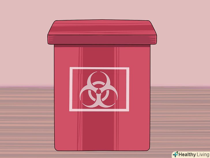 1. Візьміть контейнер для медичних відходів.такий контейнер спеціально призначений для безпечного зберігання використаних шприців і голок. Контейнери для медичних відходів можна придбати в аптеці або замовити через Інтернет.[23]