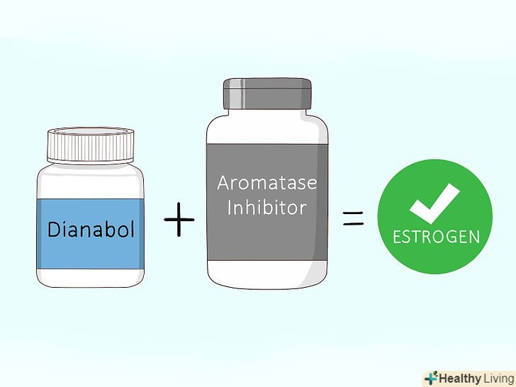 Приймайте інгібітори ароматази, щоб зменшити кількість естрогену в організмі. Діанабол є высокоэстрогенным препаратом. Це означає, що після розпаду стероїду в організмі він може привести до надмірного підвищення рівня естрогену. Прийом інгібіторів ароматази запобігає перетворенню Дианабола в естроген, і, отже, допомагає підтримувати рівень естрогену на нормальному рівні.- Найбільш поширеним побічним ефектом надмірного рівня естрогену є гінекомастія або зростання грудної тканини у чоловіків.