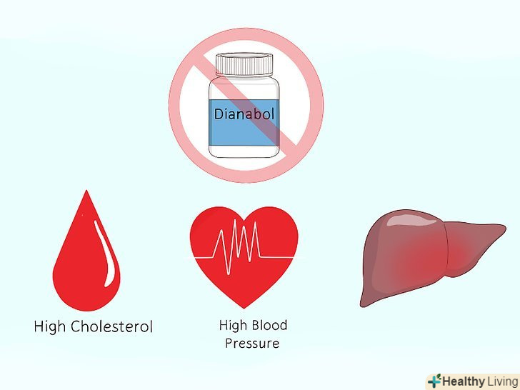 Не приймайте Дианабол, якщо ви чимось хворі.прийом Дианабола при високому рівні холестерину або високому кров'яному тиску може значно збільшити ризик серцевого нападу. З урахуванням того, яке навантаження надає Дианабол на печінку, ніколи не приймайте цей препарат, якщо ви страждаєте захворюванням печінки.- Дианабол також збільшує вміст глюкози в крові, а тому людям з діабетом також слід відмовитися від прийому цього препарату