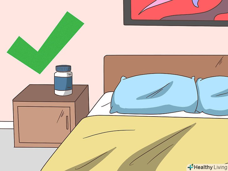 Можна зберігати вітаміни і добавки в спальні.Ваша спальня, мабуть, найкраще місце для зберігання добавок, тому що там практично немає перепадів вологості, і в спальні зазвичай прохолодно і сухо.[4]- Таблетки потрібно зберігати подалі від відкритих вікон і прямих сонячних променів, так як ці фактори можуть знизити їх ефективність.