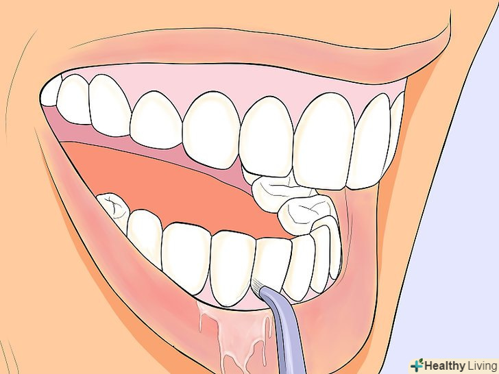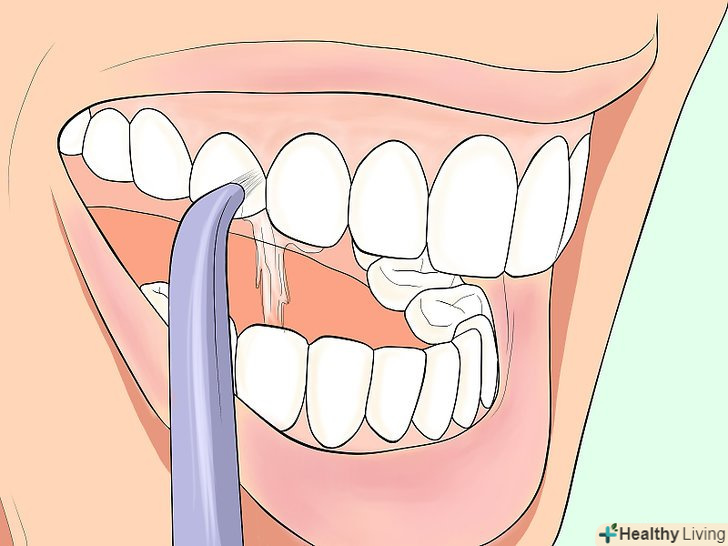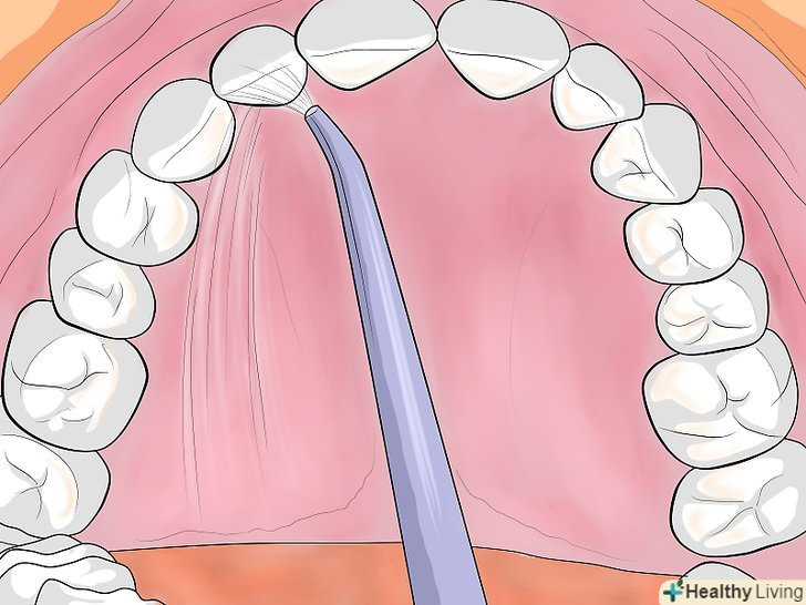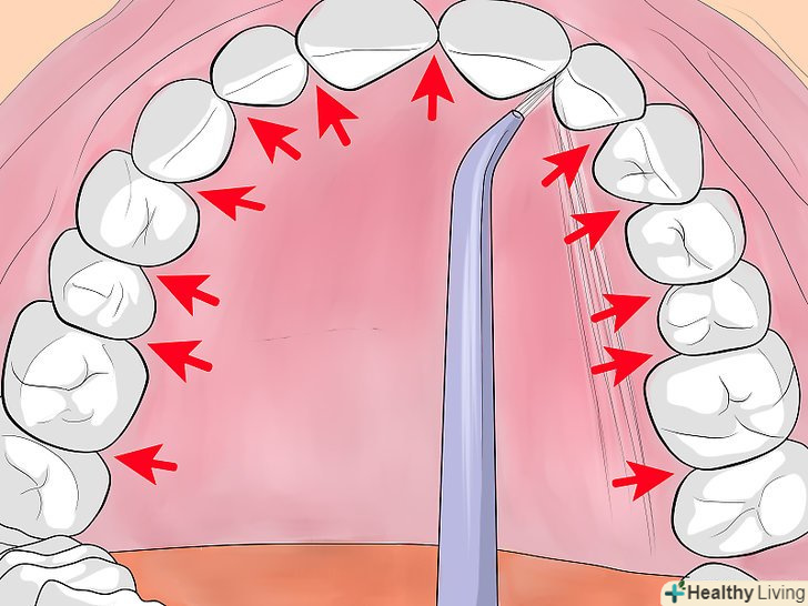 Направляйте струмінь води на підставу зуба, починаючи з задніх верхніх зубів.