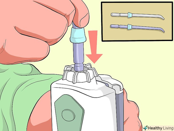 Виберіть насадку і вставте її в рукоятку.більшість іригарорів поставляються з різним кольоровим маркуванням, щоб у кожного члена сім'ї була своя особиста насадка.