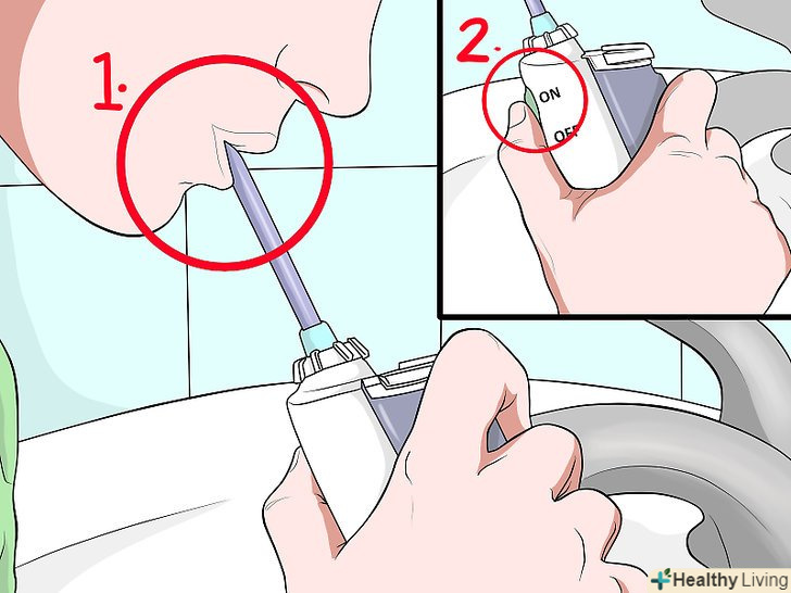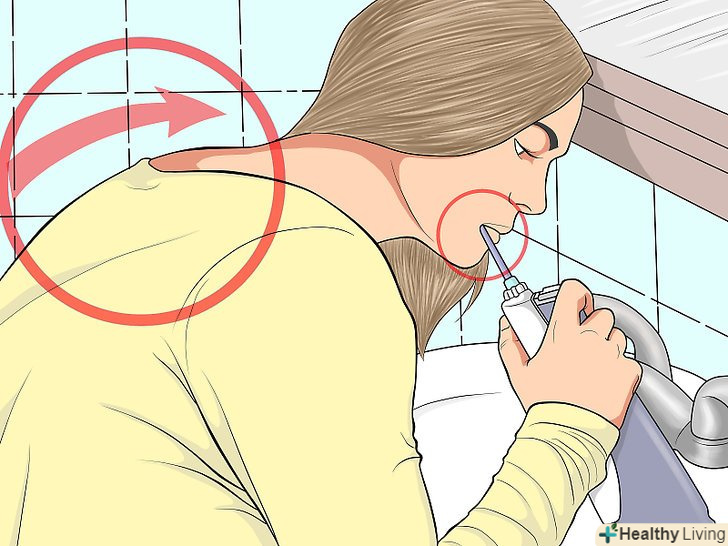 Нахиліться над раковиною і обхопіть насадку губами, щоб бризки води не потрапляли вам на обличчя і одяг.