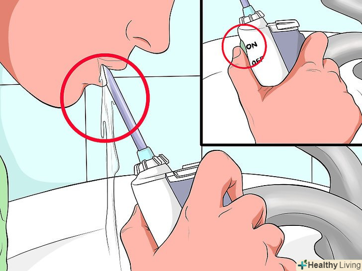 Увімкніть Waterpick, і нехай вода з рота стікає в раковину.