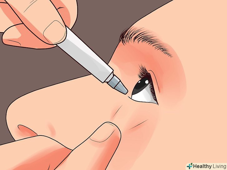 - Підготуйтеся до нанесення засобу.зніміть контактні лінзи і приберіть макіяж з очей. Найкраще це робити біля дзеркала, щоб все бачити, або ви можете попросити друга або члена сім'ї допомогти вам.[7]