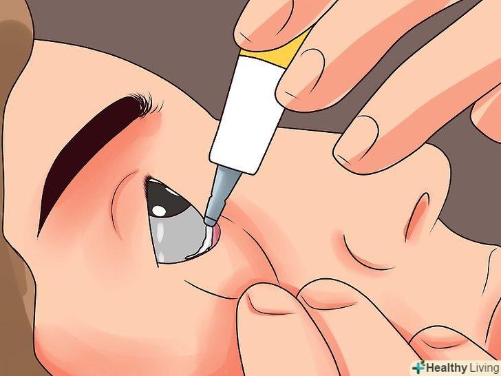 Закиньте голову назад.злегка закиньте голову назад, а потім пальцями домінуючої руки (або тієї, якій вам зручніше) відтягніть нижню повіку вниз. Завдяки цьому ви створите маленький "кишеньку", в який можна нанести засіб.[10]