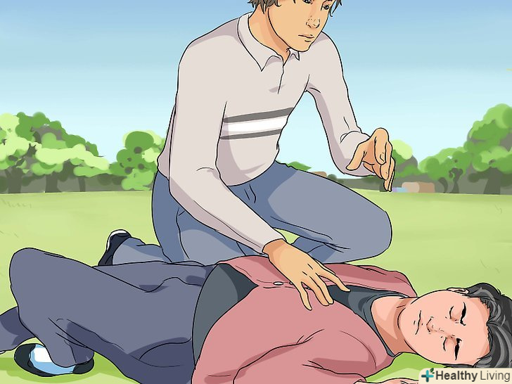 Підтвердіть зупинку серця.якщо ви побачили людину, якій потрібна екстрена допомога, переконайтеся, що у нього дійсно зупинилося серце, перш ніж використовувати АВД. Переконайтеся, що потерпілий ні на що не реагує, не дихає і що у нього немає пульсу. Скористайтеся правилом АВС. [1] у разі відсутності пульсу або дихання, почніть робити штучне дихання.- А (airway-прохідність дихальних шляхів): перш ніж перевірити дихання, переконайтеся, що дихальні шляхи вільні. Для цього закиньте голову потерпілого назад і підніміть його підборіддя.[2] якщо ви побачите, що дихальні шляхи заблоковані якимось предметом, витягніть його.