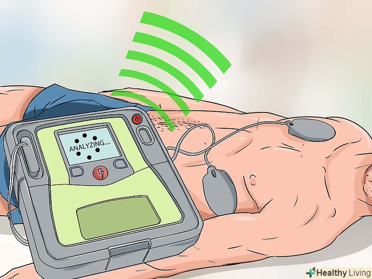 - Якщо АВД не проводить аналіз серцевого ритму і не завдає розряд потерпілому, хтось повинен весь час проводити реанімацію. Це дозволить запобігти пошкодженню серця.[17]